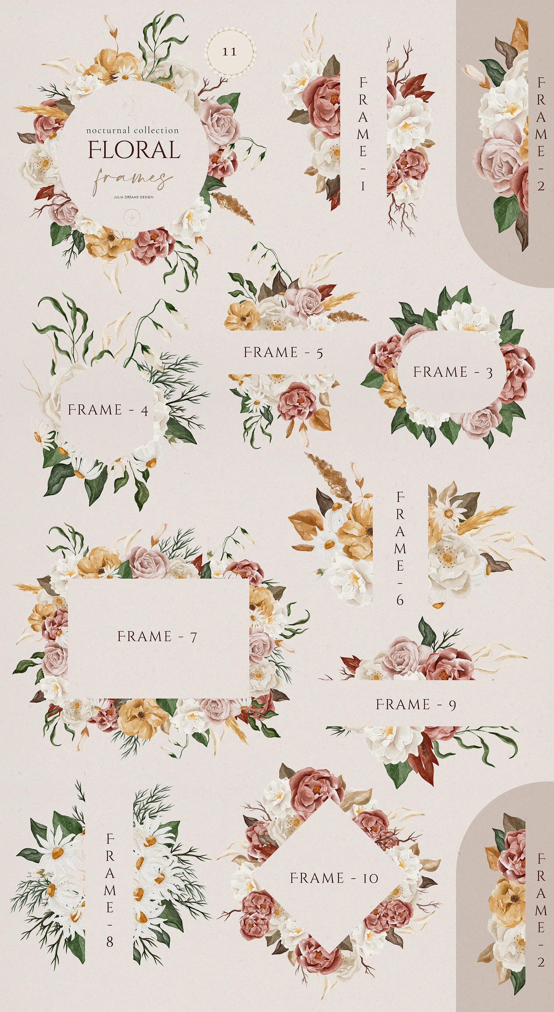 Hand painted with love watercolor botanical elements can perfectly complement your project and help create a sophisticated, restrained and fashionable style. All these elements can make a special atmosphere in your project: from wedding to stationery branding, from fabric for dresses to posters and postcards.